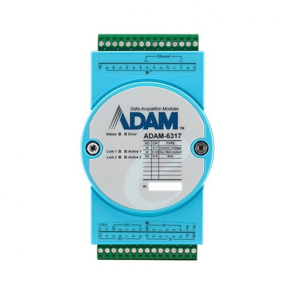 Advantech 8AI/10DI/11DO IoT Modbus/OPC UA Ethernet Remote I/O (ADAM-6317-A1)